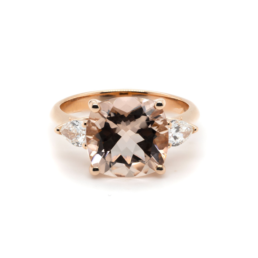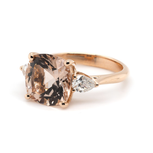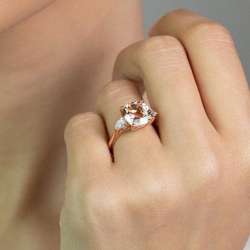 Inel Aur Roz 18k, Morganit 3.6 ct, Diamante 0.4 ct